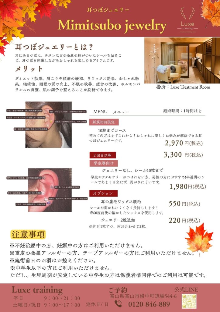 会員出ない方ももちろんご予約いただけますので、ぜひLuxeで耳つぼジュエリーをご体験ください。